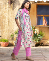 Off-white & Pink Block Print Cotton Kurta Pant Set